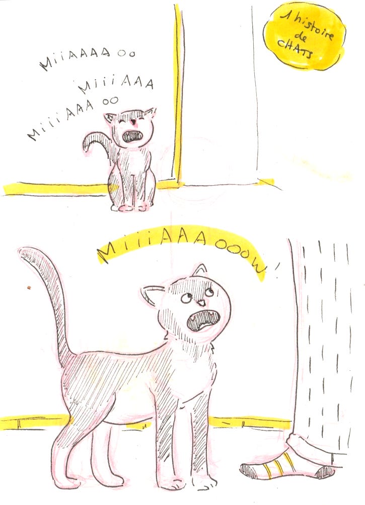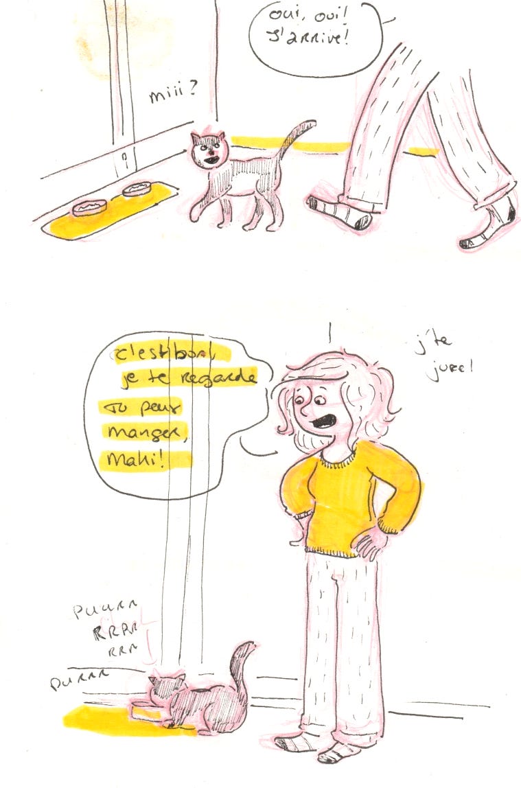 Chaque jour, chaque matin, Maki miaule et nous demande de la suivre afin que nous la regardions… manger ! C’est un peu mignon, sauf quand elle fait ça à 6h du matin et que l’on dort encore. Des fois, on a vraiment l’impression de vivre chez nos chats.