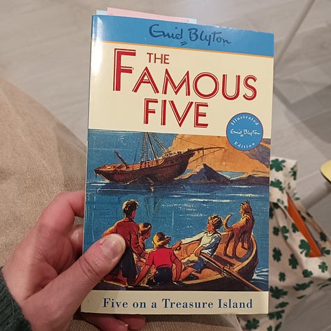 Dimanche 12 avril. Journée repos. Martin étant en vacances chez ses grands-parents, nous en avons profité pour faire la grasse mat’ jusqu’à 11h. Nous avons passé la journée en tenue relax / pyjama. La tenue parfaite pour lire, regarder des séries, écouter de la musique et manger de bons petits plats. ça nous a vraiment fait du bien. J’ai même bien avancé dans la lecture de The Famous Five : Five on a Treasure Island, roman que j’avais acheté en Irlande. Retour en enfance avec le Club des Cinq2.