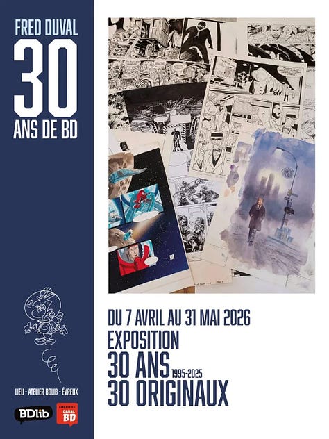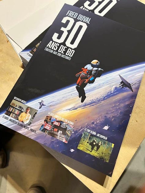 Vendredi 10 avril. Ce soir, nous sommes invités par la libraire BDlib à Evreux, à fêter les 30 ans de carrière du scénariste BD Fred Duval. Marc a travaillé sur le catalogue de l’exposition. C’était un gros gros travail. Le catalogue est vraiment beau ! Bravo mon Funky !