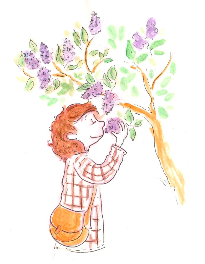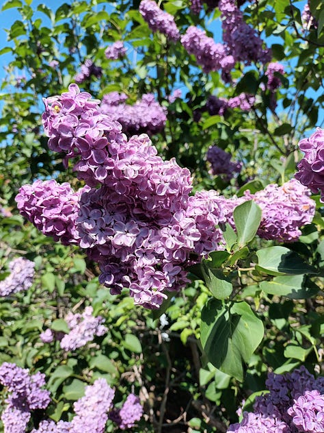 Lundi 20 avril. Le rituel du printemps : sentir les fleurs de notre lilas en sortant et en rentrant dans le jardin. J’aime tellement cet arbre qui celui a chaque printemps. Petit soucis, notre joli lilas commence à s’affaisser. J’espère que nous trouverons une solution pour le redresser. L’odeur du lilas est tellement enivrante.. et ses fleurs sont si jolies.