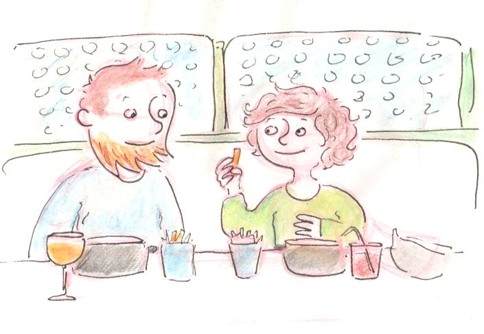 Dimanche 26 avril. Nous voulions nous faire un petit restaurant en amoureux, cette semaine. Mais le plan des vacances ayant été modifié, nous avons décidé de faire un petit restau en famille. Martin a absolument voulu manger des moules frites2, alors nous sommes allés au Léon de Bruxelles d’Evreux. C’était un bon petit moment.