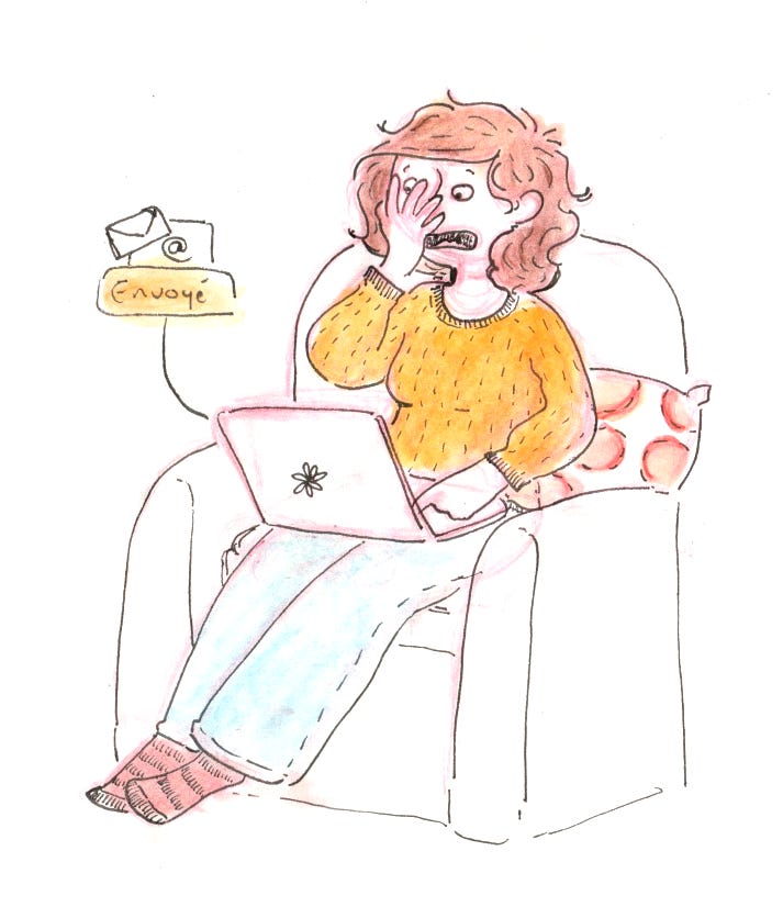 Jeudi 23 avril. Cette semaine j’ai enfin sauté le pas et j’ai postulé à deux offres d’emploi à côté de chez moi afin de changer de poste. Mon travail actuel ne me convenant plus vraiment pour de multiples raisons. Je ne sais pas ce que ça donnera, je ne sais pas si cela sera compatible avec les RDV de Martin... mais au moins, je suis fière d’avoir refait mon CV et d’avoir impulsé la marche vers autre chose. Evidemment, j’a tout fait en deux jours1, envoyé mes candidatures au tout dernier moment : procrastination quand tu nous tient. Où l’art de se mettre en mouvement que sous la pression, comme toujours ! (Je me fatigue toute seule)