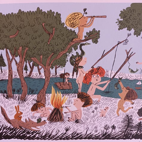 Alerte coup de cœur ! Je suis tellement fan du travail de ces deux autrices. Elise Gravel et ses textes plein d’humour mais toujours percutants (et ses illustrations !!); Magali Le Huche et son dessin vif, drôle et tellement graphique. Bref, j’atais déjà séduite. Et que dire de l’histoire ? On y découvre une tribu d’enfants vivant tout nus, dans la foret. Ces enfants sont loin d’être bêtes. Ils sont traqués par Yvonne Carré, la directrice d’un orphelinat, qui aimerait bien remettre un peu d’ordre dans tout ça. Et oui, franchement, tous ces enfants en liberté, ça n’est pas concevable ! Evidemment, les enfants ne vont pas se laisser faire.