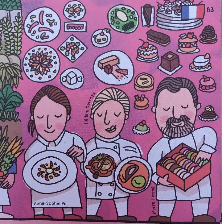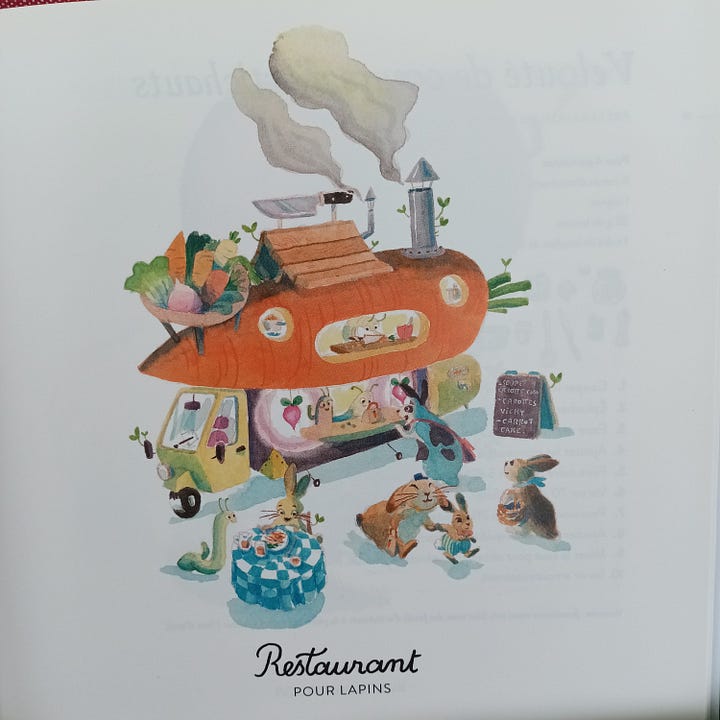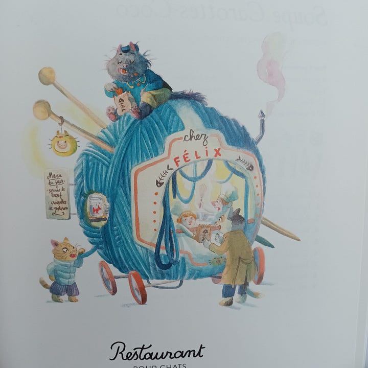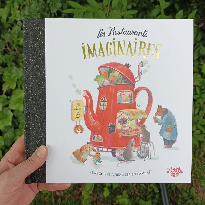 Le livre "les restaurants imaginaires" de Loïc Clément et Anne Montel est un petit concentré de recettes à faire en famille agrémenté des dessins poétiques. J’avoue ne pas encore avoir testé, mais j’ai adoré regarder les détails des illustrations.
