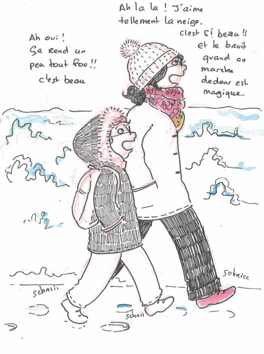 Lundi 05 janvier. La neige est arrivée en Normandie ! Quelle joie de voir ce beau manteau blanc dans le jardin et dans les rues. Tout parait plus calme et serein sous la neige. Bien sûr, nous avons la chance de pouvoir aller au travail ou à l’école à pied, ou encore de télétravailler. Les RDV que nous avions en début de semaine ont été annulés. Bref, bataille de boules de neige, bonhomme et moment au coin du feu. Comme un air de vacances !