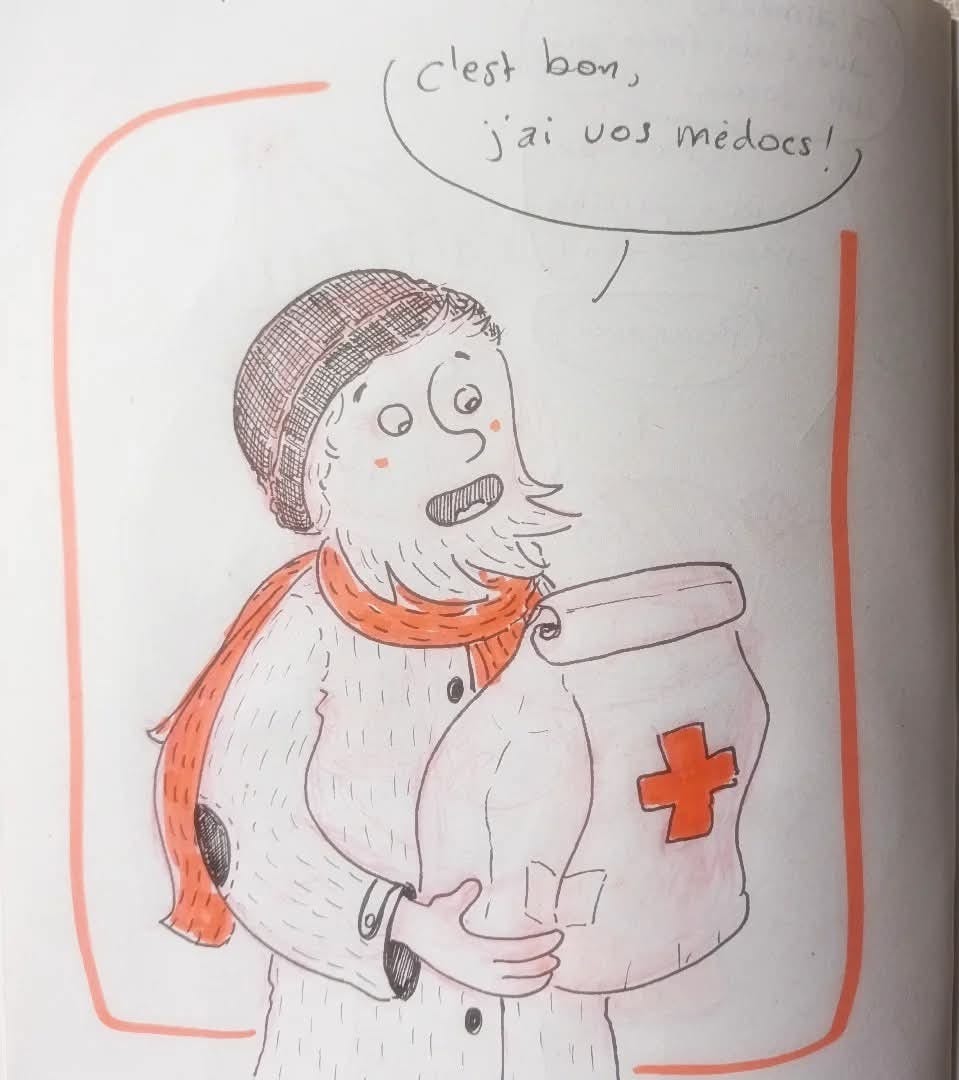 Slide 3 : passage chez le médecin pour Martin et moi : rhume, toux, conjonctivite. Rien de méchant mais on a la dose de médocs !
