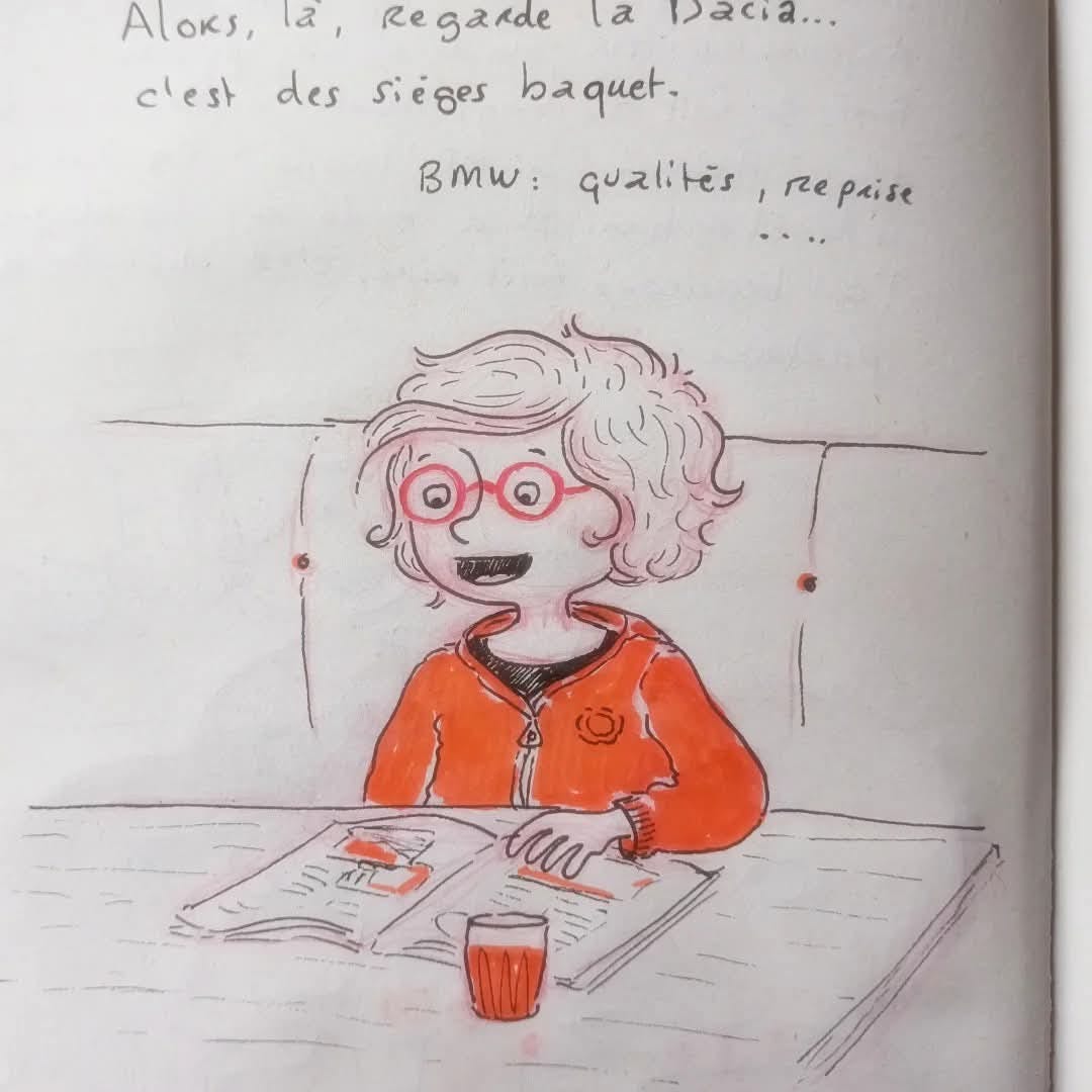Slide 1 : Martin se passionne pour les voitures et est trop content de parcourir son magazine spécial voitures.