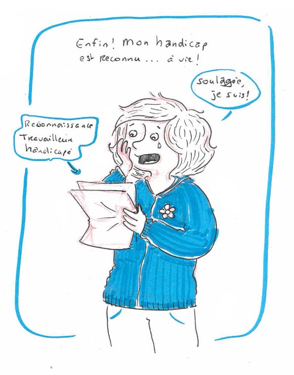 Lundi. Bonne nouvelle dans notre boite aux lettres ! J’ai enfin reçu une réponse de la MDPH (Maison des Personnes Handicapées) concernant ma demande de reconnaissance Travailleur Handicapé. Mon handicap (malformation cardiaque complexe) est reconnu… à vie ! Ben oui, malgré tous les progrès de la science, mon cœur ne va pas se réparer comme par magie. Je vis plutôt normalement, mais je suis quand même contente d’avoir cette reconnaissance. J’espère que cela m’aidera pour une éventuelle reconversion.