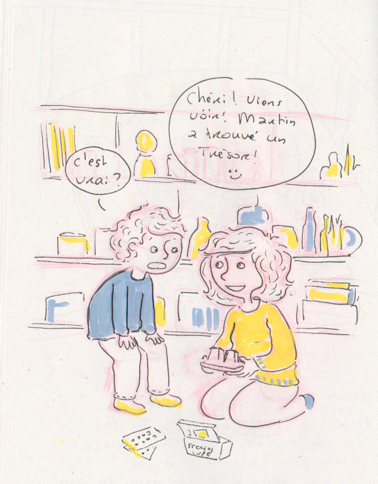 Ce soir, par exemple, au moment où j’écris cette lettre : 1h qu’il est dans son lit et il nous a déjà appelé 3 fois pour un verre d’eau, un mal d’oreille, un bruit suspect, 2 envies de pipi, des câlins. Bref, les soirées calmes sont rares. Vivement que ça passe !