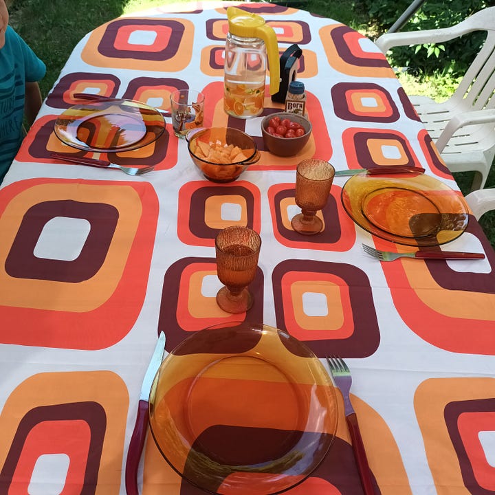 Voilà, je vous laisse sur ce mini tour de jardin avec notre tablée “seventies” de dimanche. Faites attention à vous avec les grosses chaleurs.