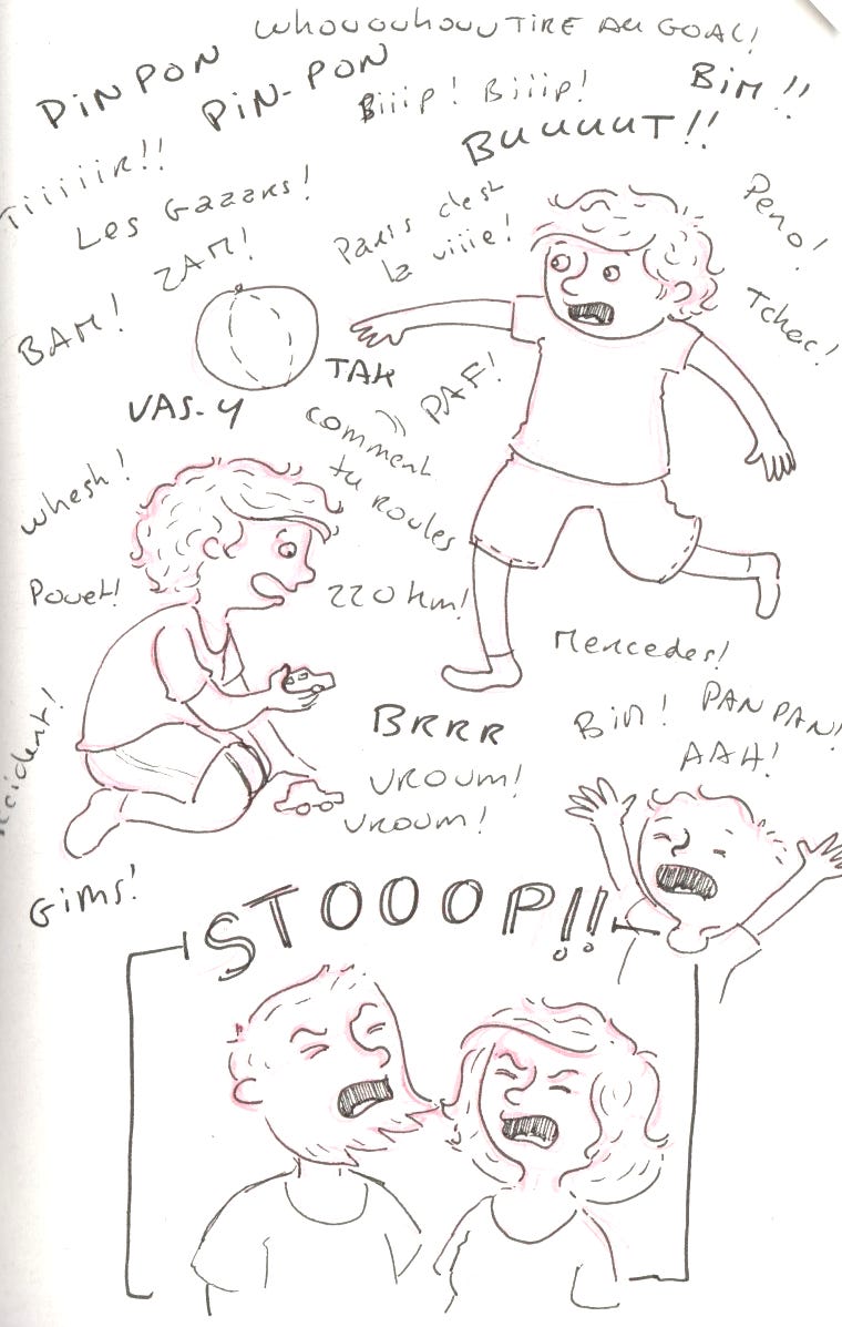 Mardi. En ce moment, Martin est une pile électrique. Il joue en parlant fort, en criant, il bouge sans cesse, il nous bombarde de phrases pénibles. Bref, du bruit et de l’agitation non stop. ça devient difficile de garder son calme. Espérons que les vacances vont apaiser un peu tout ça.