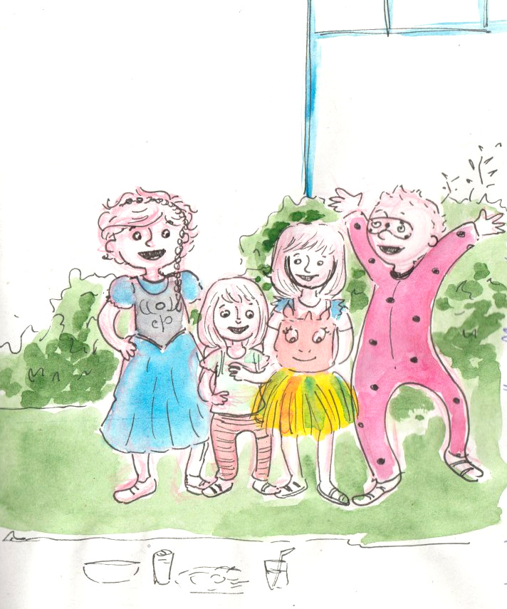 Mercredi.Apéro pique-nique avec les copains du milieu de la rue, Clara, Bastien et leurs enfants. ces derniers et Martin ont joués dehors, se sont déguisés1, nous ont présenté un spectacle très…décousu mais amusant. Ils étaient vraiment mignons, tous les 4 ! J’ai passé une super soirée. C’était très chouette de prendre le temps de discuter, d’apprendre à mieux se connaitre. A refaire !