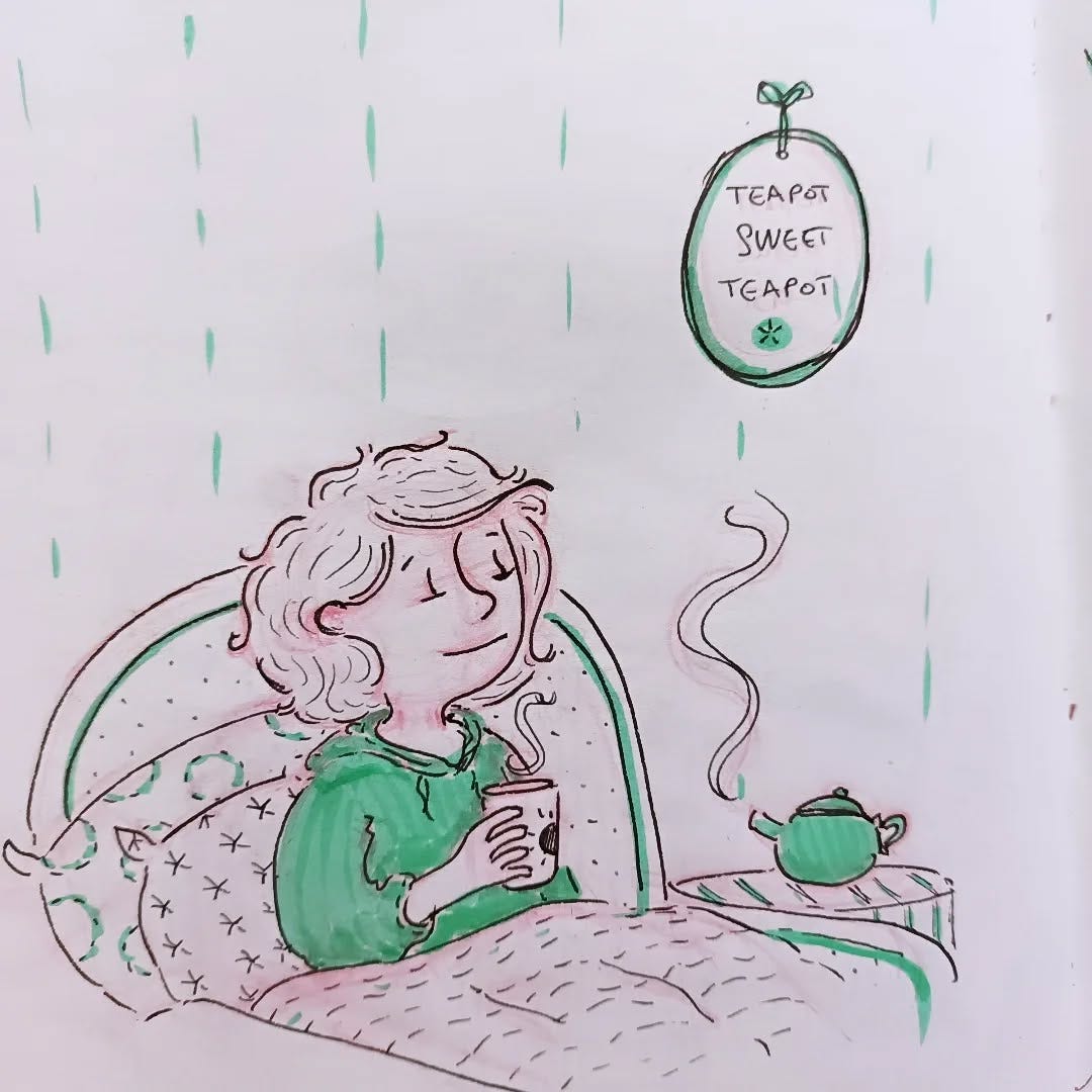 Notre chaudière fait tellement de bruit, comme celui qui fait un couvercle sur une casserole qui bout. J'ai l'impression de vivre dans une théière. Ça serait sympa, comme nom de maison "La théière"