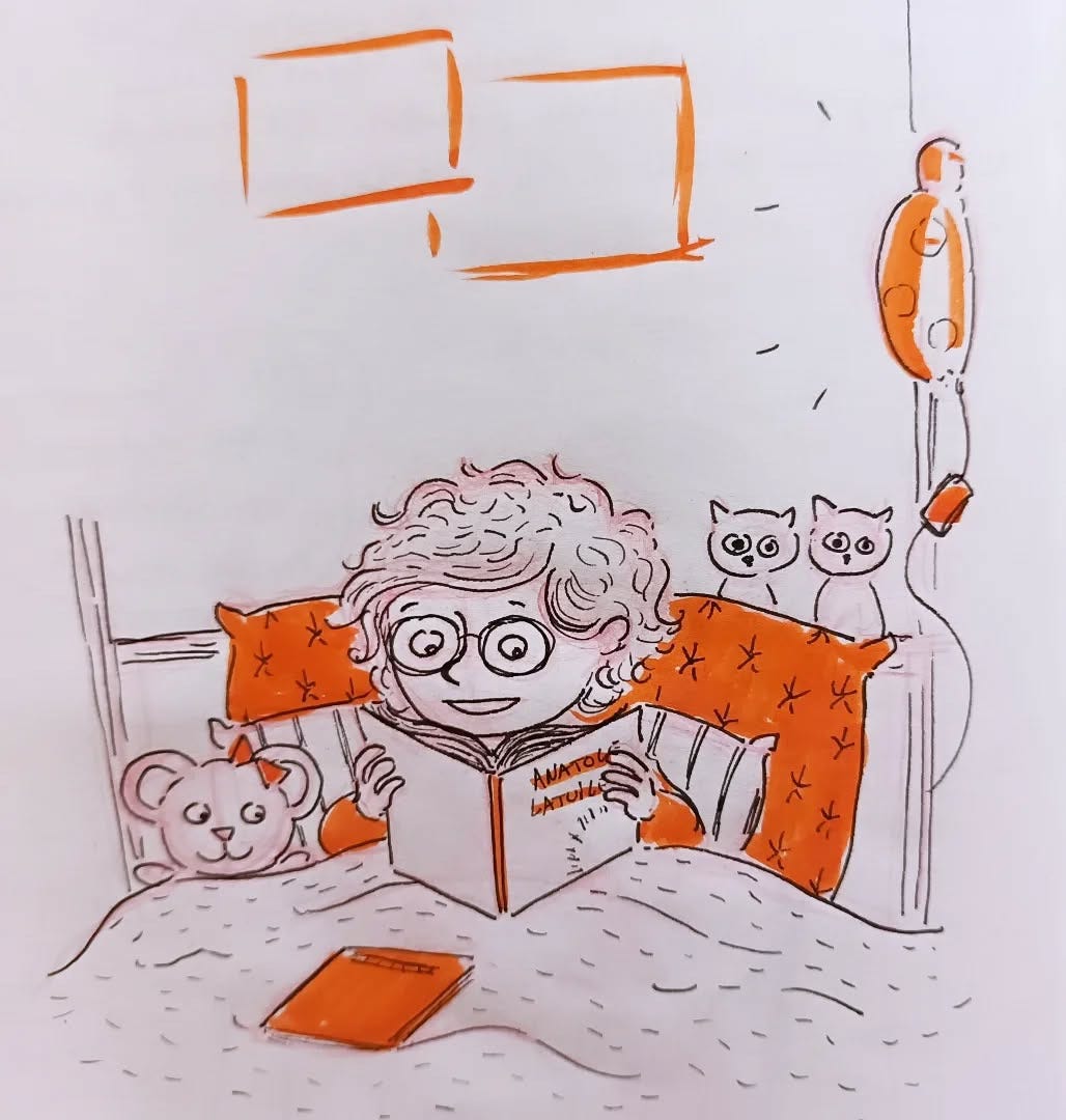 Martin adore lire Anatole Latuile. Le soir, il lit tranquillement. C'est génial de le voir si concentré.