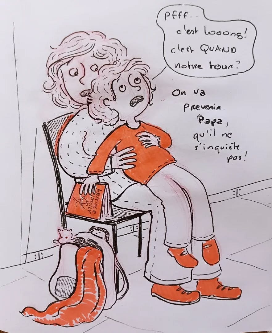 RDV au CHU de Rouen avec un occulo-prothésiste pour Martin. 2h de retard!Nous sommes partis à 14h de chez nous... retour à 19h30.