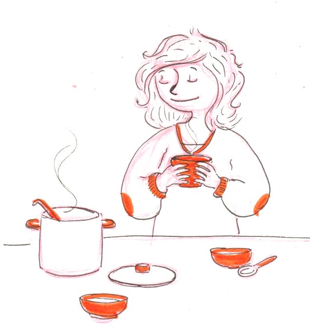 Dimanche 9 novembre. Après une semaine un peu fatigante et compliquée, rien ne vaut une bonne petite soupe réconfortante. J’ai donc fait la soupe d’automne préférée : le velouté au potimarron. Martin m’a même aidé à couper le potimarron. Vous avez une recette fétiche, un peu réconfortante, vous aussi ?