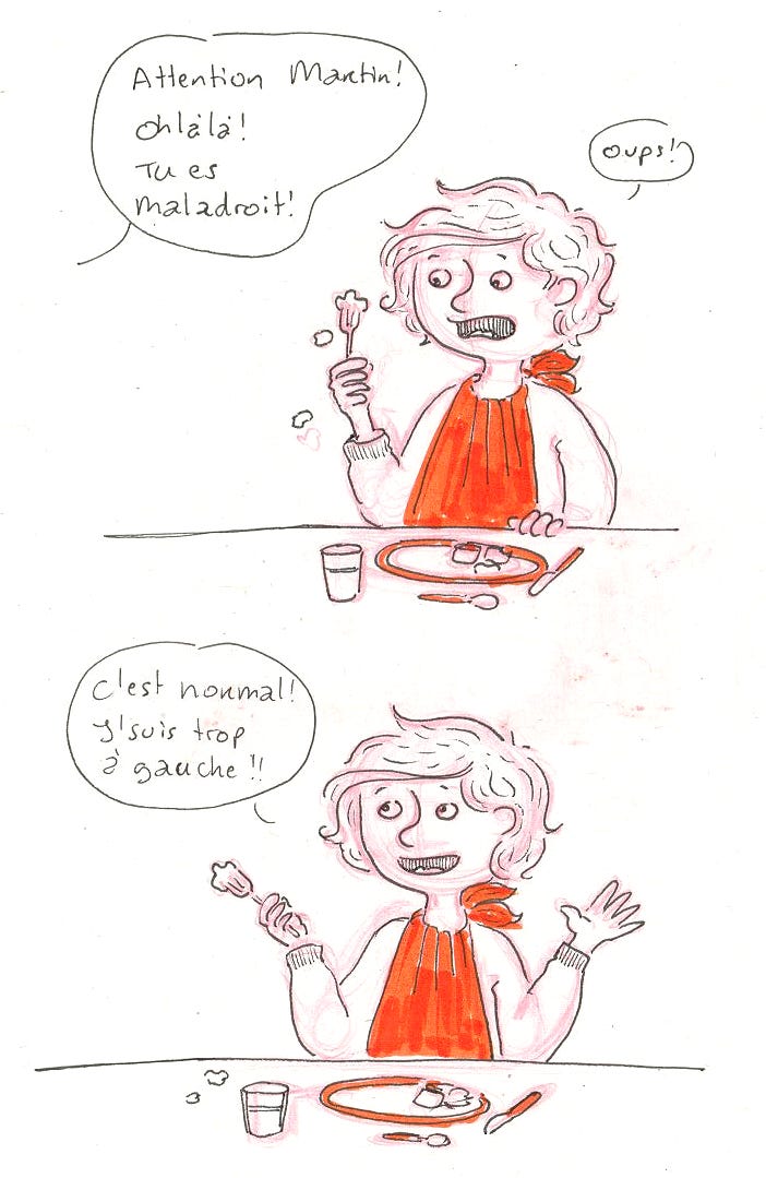 Martin, dans le dessin du mercredi, ça me rappelle la chanson Léa de Louise Attaque (dans l'album du même nom) "Léa elle est pas à gauche elle est pas à droite elle est pas maladroite" ^^