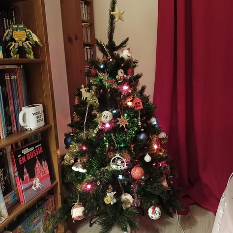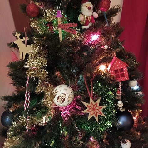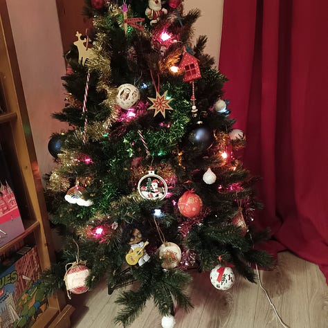 La Saint-Nicolas, c’est un peu le feu vert pour commencer à décorer la maison. Alors, nous n’avons pas encore fait de bonhommes pain d’épices1 mais nous avons fait notre sapin. J’adore ça ! Notre sapin est un peu un vaste fouillis de tout ce que l’on aime. Et nous y mettons toujours une guirlande lumineuse comme celles que nous avions durant les Noël de notre enfance2. Le tout en écoutant une playlist de Noël : juste de quoi apaiser les cœurs et les esprits.