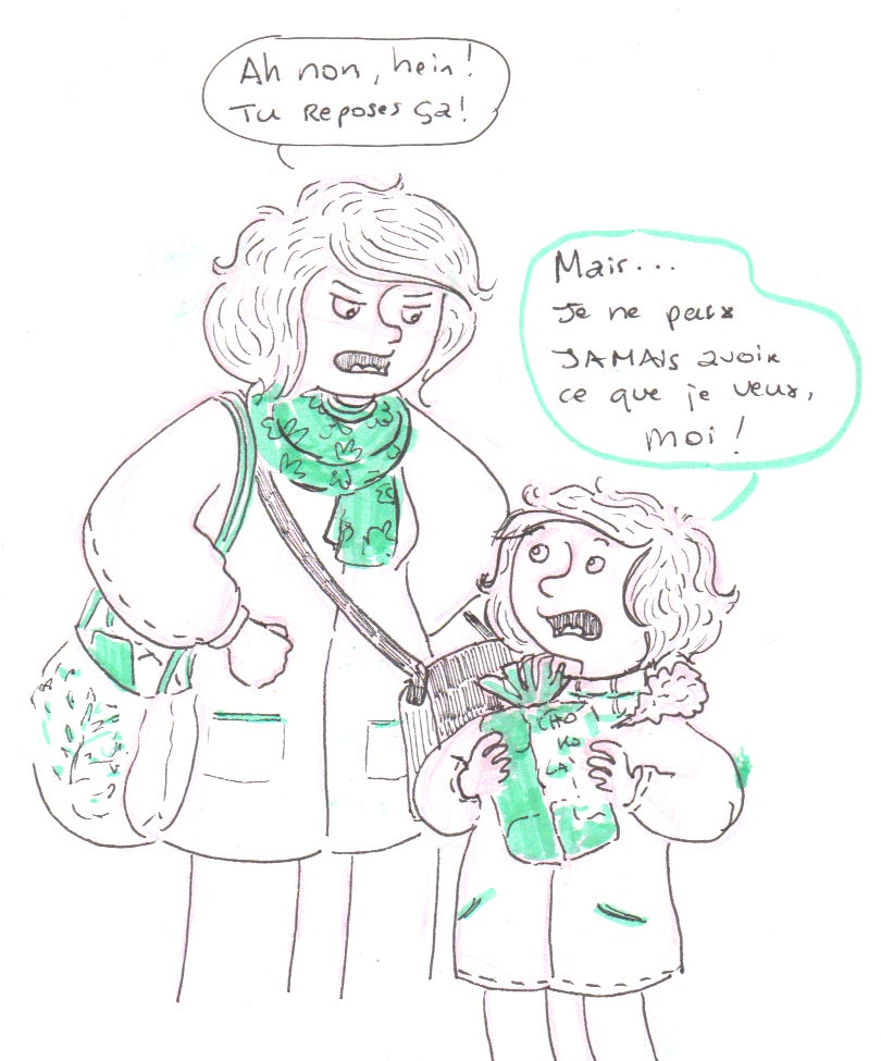Jeudi. Les courses où ce moment de tension permanente, avec des tentations de toutes part ! Et, un enfant qui n’est jamais satisfait. Dites-moi que c’est pareil chez vous !