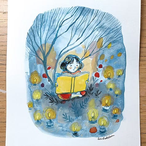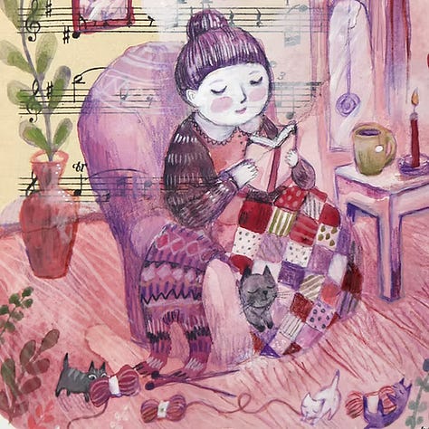 Aujourd’hui, je voudrais vous parler d’Eva Chatelain, une illustratrice qui vit dans mon département. J’aime beaucoup son univers poétique, un peu nostalgique et plein de couleurs. Eva dessine, peint, joue de la musique, chante. C’est une artiste à part entière. Elle crée et aime partager son travail sur Internet.