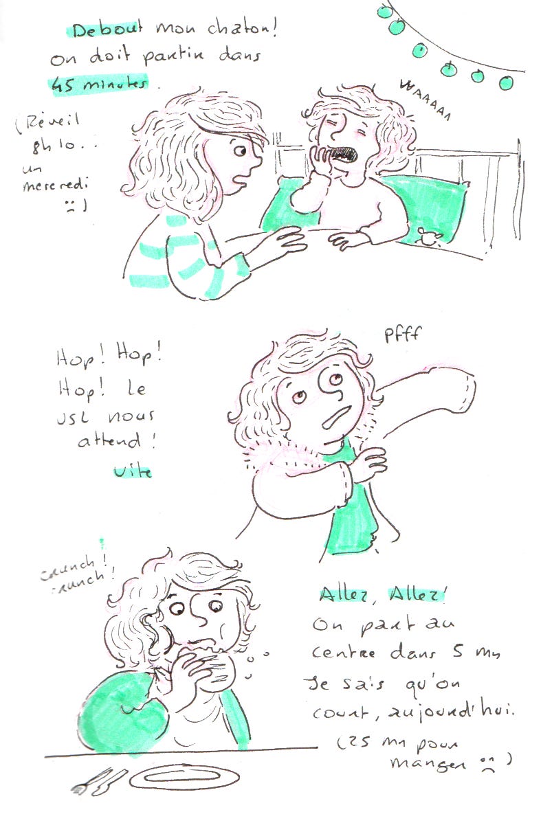 Mercredi en mode “on se dépêche”. Rendez-vous au CHU de Rouen pour le lutin. On s’est dépêche toute la matinée. Parfois, j’aimerais que l’on court moins dans tous les sens, le mercredi. C’est censé être une journée de repos pour les enfants, mais on est presque plus bousculé que les autres jours de la semaine.