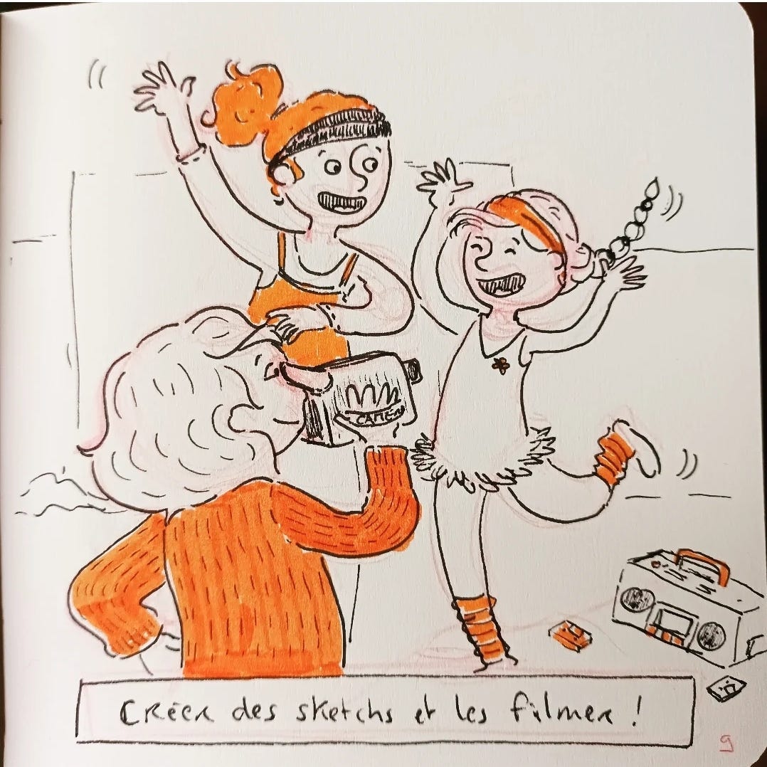 Une de nos activités préférées avez ma sœur, Lisou, et notre amie Fof était de nous filmer avec le camescope des parents.